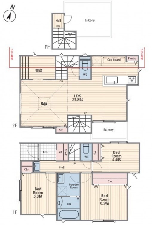 - ルーフバルコニー、カウンターキッチン、駐車場2台分、宅配BOX、外シャワー