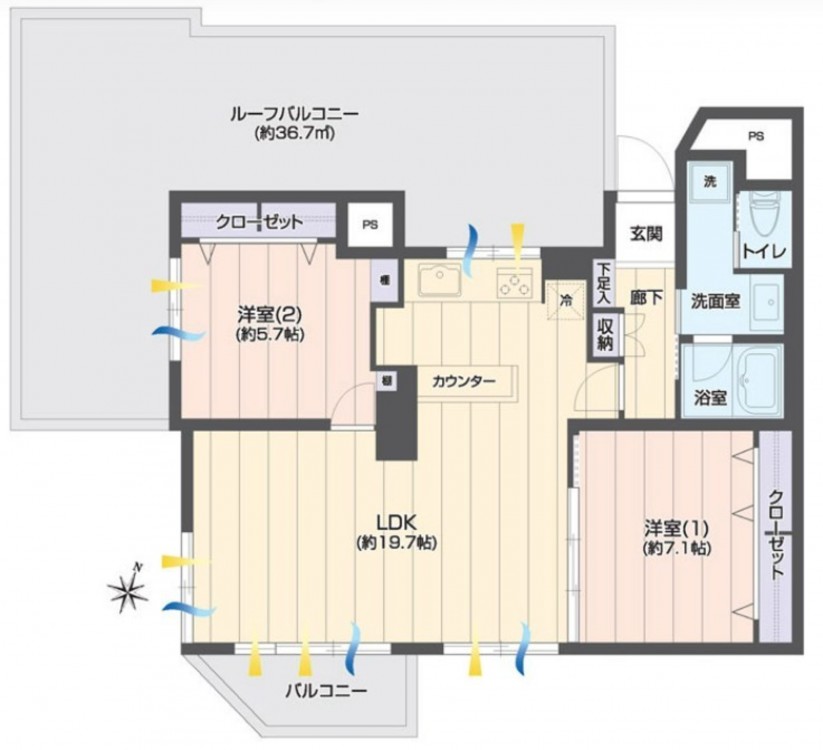 - システムキッチン、食器洗浄乾燥機、モニタ付インターホン、洗浄便座、オートロック、エレベーター